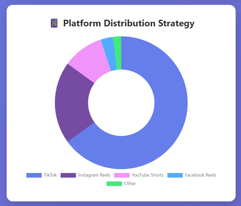 - Platform Distribution: TikTok, Instagram Reels, YouTube Shorts